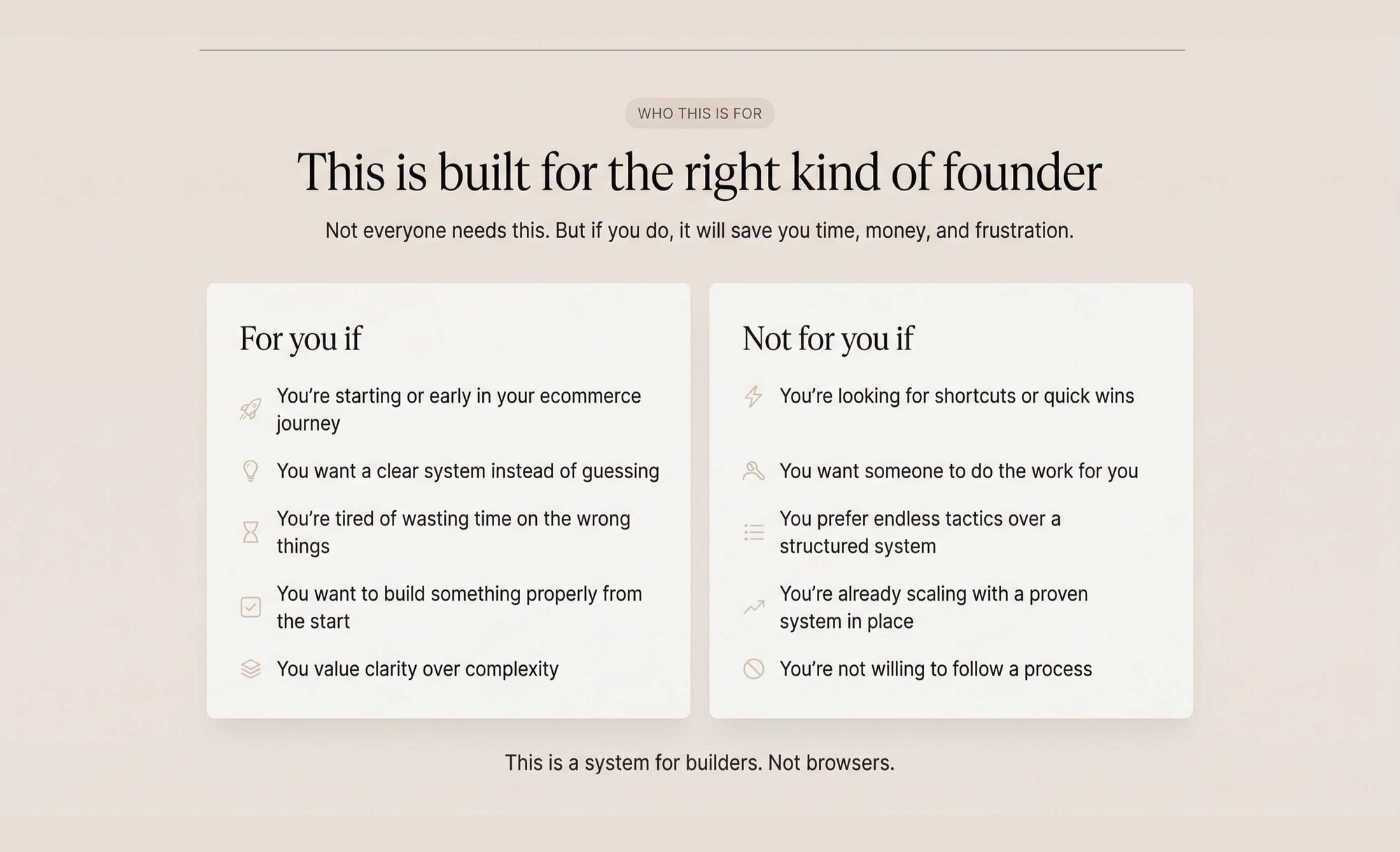 If you're building or scaling an ecommerce brand, the framework is designed to apply.